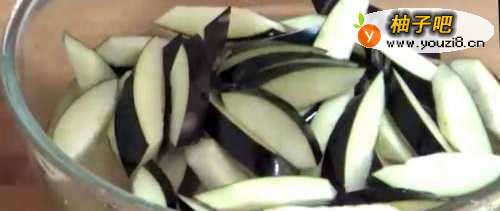 洗净的茄子去头去尾,切成四瓣 去瓤
