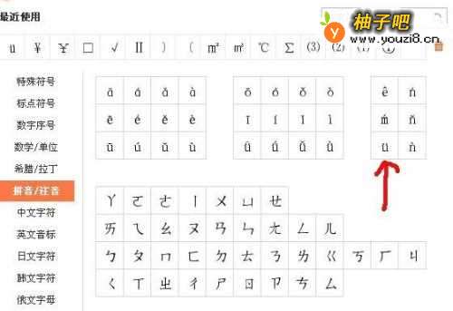 66、点击拼音ü,查看wps文档中是否已经敲出这个拼音字母。