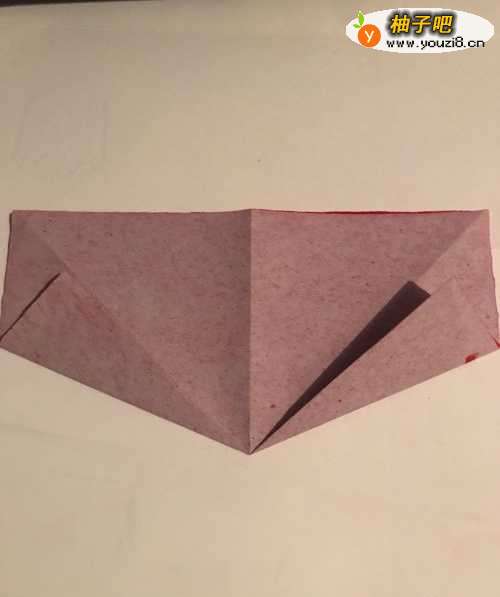 3第三步 折完后 再把它左右翻过来对折一次 然后掀起右边的双边 向左再对齐左边的双边折叠一遍