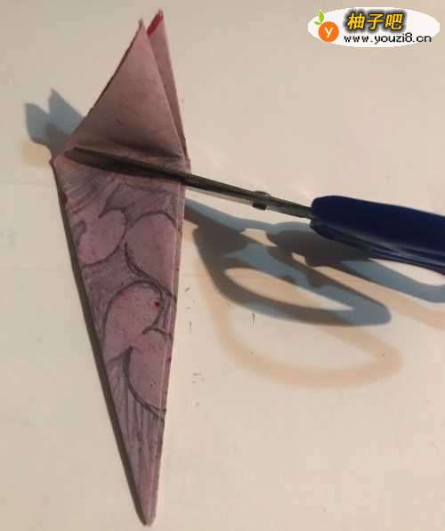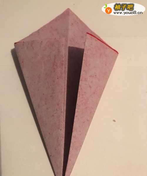 5第五步 都折完之后 再把最宽处向下折一道折痕 然后拿起绘图铅笔 在折痕下面开始画上几个简单的半个心形