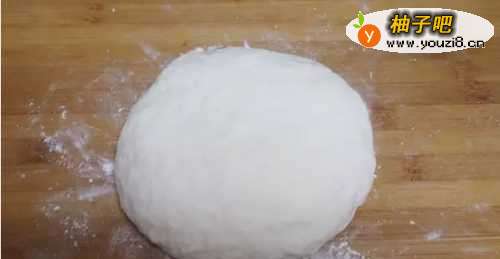 44、面粉550克-600克左右,加入清水,揉成面团,盖保鲜膜醒发20分钟。