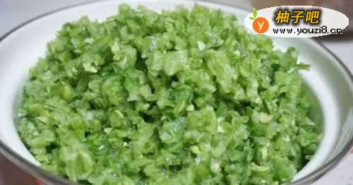 1、做馅饼的豆角,要选择比较宽厚的豆角,这样切碎后拌馅很香,吃起来口感也好,不柴。豆角洗净,切碎丁。不需要用盐杀水,用手攥一攥即可。