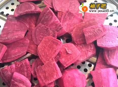 紫薯去皮切片,清洗干净后放入盆中;