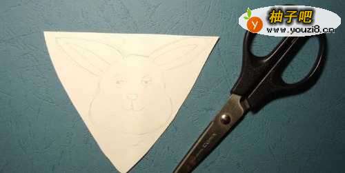 然后,用棕色彩色笔在卡纸上画出可爱兔子的图形,如下图所示。