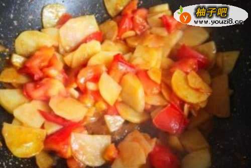 放入西红柿块儿。