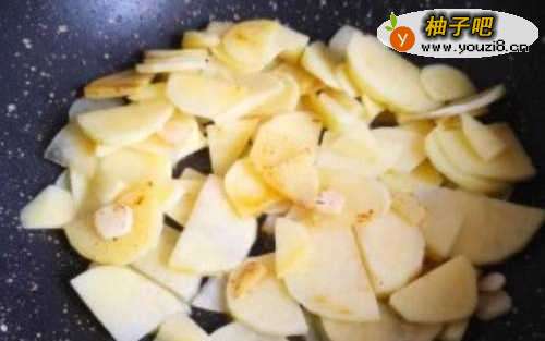 放入土豆片儿,翻炒至土豆变透明状。