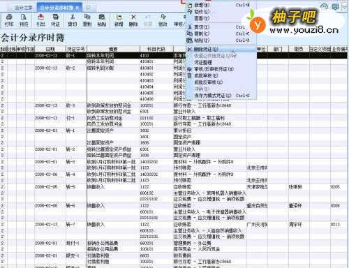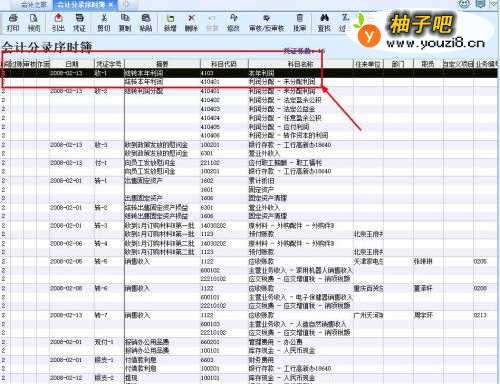 3“会计分录序时簿”界面,选择需要作废的【会计凭证】;