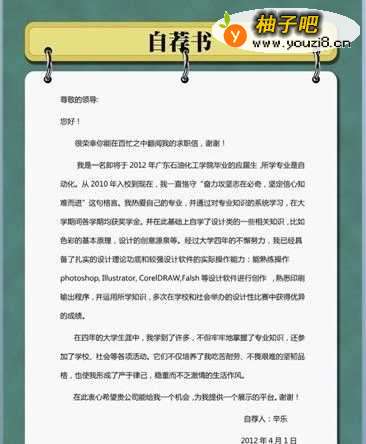 自荐书格式以及怎么写?