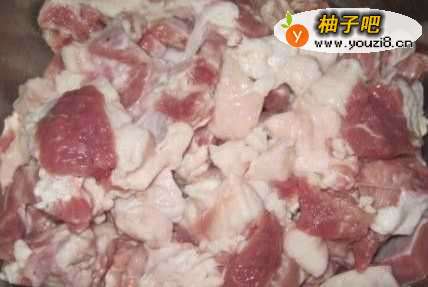 将选购好的羊肉用清水冲洗干净后切制成2厘米左右的小方块,放入容器中