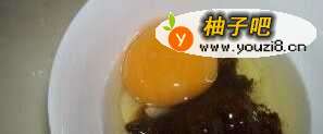 2东北大酱放碗中,打入鸡蛋。