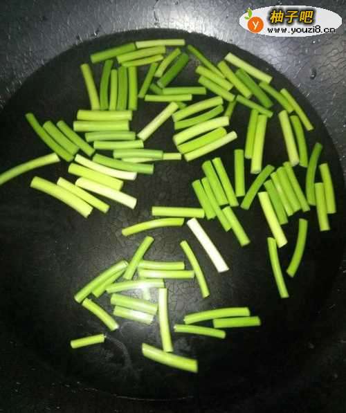 取适量的蒜苔,清洗干净,切成小段,再将蒜苔下入锅里,煮开、捞出;