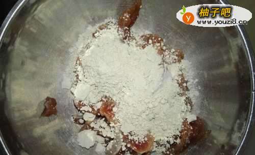 2取适量的瘦肉,清洗干净,切成小片,放入碗里,加入适量的淀粉,抓匀;