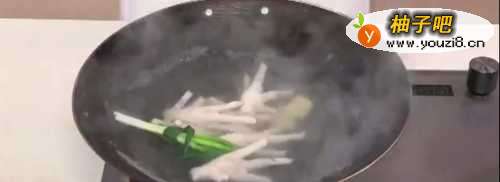 2锅中倒入适量水烧开 倒入葱结姜片