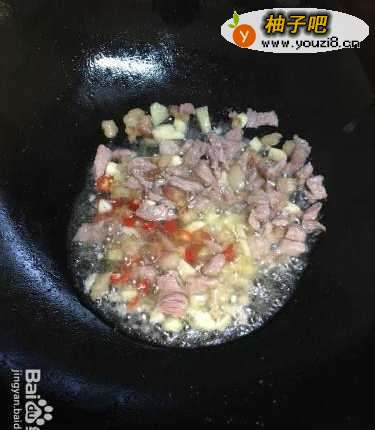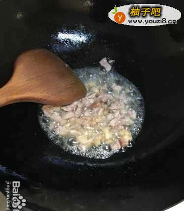 5第五,先煎一下肥肉,再放瘦肉,放少许盐,炒入味后