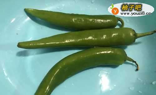 新鲜的青椒洗净,切去头尾。