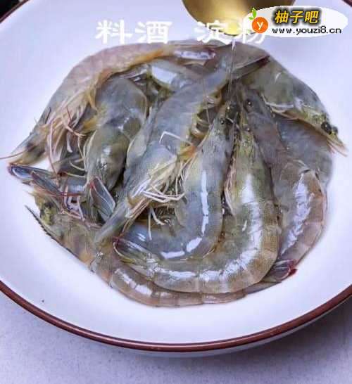 大虾背部用小刀划开,挑出泥肠。用料酒腌制十分钟更入味,土豆洗净去皮切条状