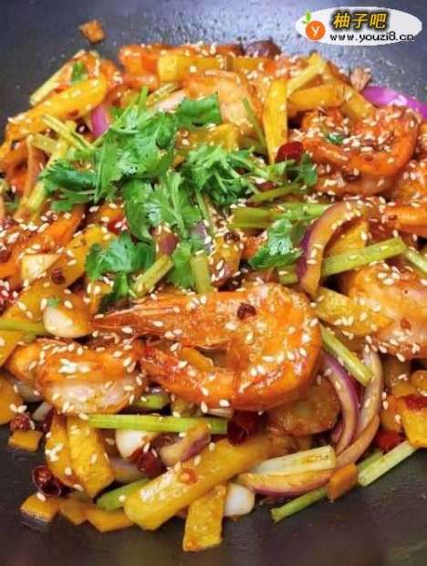 干锅香辣虾是一道美食,制作原料主要有鲜活大虾、大蒜、生姜、葱白、朝天椒、香菜根、料酒、生抽、糖等。干锅香辣虾炒的时候不要过分地煸炒。