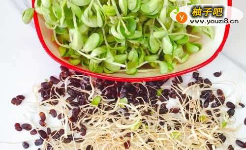 豆芽大家经常买,黑豆苗你吃过吗?清脆鲜嫩,比黄豆芽营养翻10倍。 “久食黑豆,好颜色,变白不老”,黑豆营养丰富,有“药王”之美称,是植物中营养最丰富的粗粮佳品。作为“母体”的黑豆如此优秀,所以黑豆泡发出的黑豆苗也含有丰富的维生素和蛋白质,其富含的胡萝卜素有补肝明目之功效。簇拥成团的黑豆苗,纤细白嫩的根茎上面生着饱满脆嫩的豆瓣,青葱翠绿,看起来就令人垂涎欲滴,深受大家喜爱。而且黑豆苗称得上星级减肥食品,热量特别低,是美味又营养减肥餐,女士常食还有美白养肤的功效。