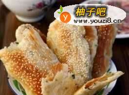 油酥烧饼层层分明,软韧有度,香酥无比。 在我的家乡路边摊从早到晚都有,它是用发酵面团包裹猪油葱油酥,擀制成饼后撒上芝麻,用电烤箱烤制。 每当路过烧饼摊,闻到那香味就忍不住要买上一只,夹上辣椒小咸菜,边走边吃。
