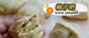 6油60克烧热,然后将香料和面粉倒入搅拌匀,冷确后加入香葱拌匀,这就是葱油酥。