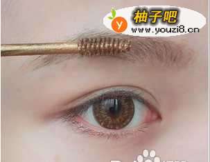 2用可可色染眉膏晕染眉毛。