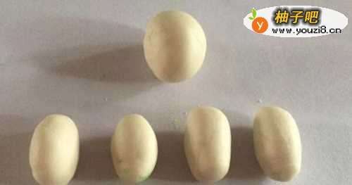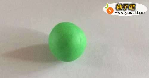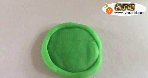 先用少许的绿色的橡皮泥,搓出圆形,不要用太多的橡皮泥,然后压扁了,见下图展示。