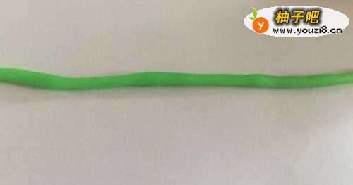 2然后我们再取少许的橡皮泥,量要比1步骤的要少,搓出一个细细的长条,见下图展示。