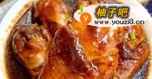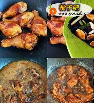 33️⃣油热鸡腿煎至两面金黄,淋入腌制剩余的料汁➕半碗开水没过鸡腿,大火煮开小火焖熟,收汁出锅。
