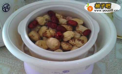 5放入炖锅里,盖上盖子,按煲汤键