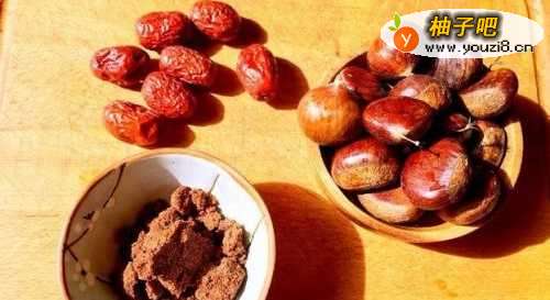 所需食材:红枣十个板栗二十个,红糖适量。