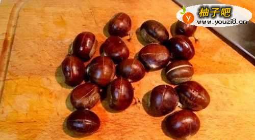 2先在生板栗上切一刀,板栗壳略硬,可注意不要切到手,