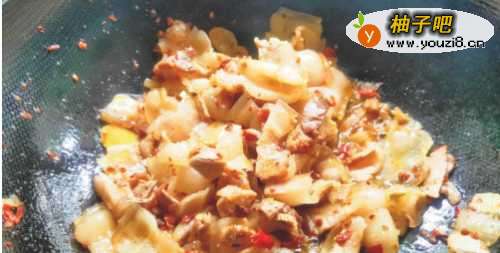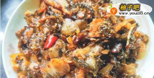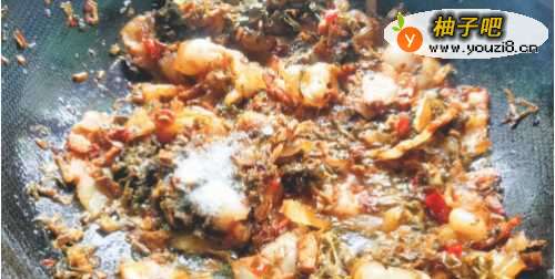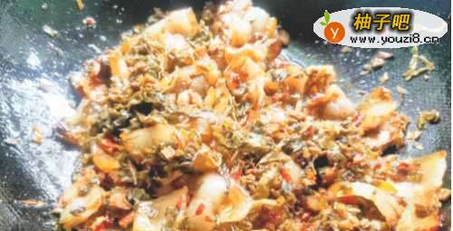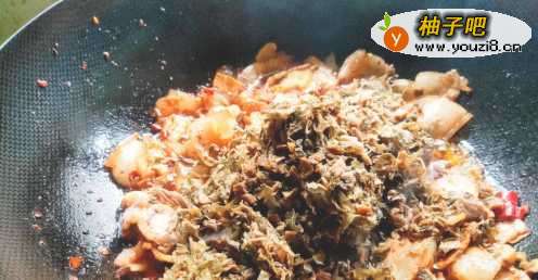 3加入提前泡发洗净,挤掉水分的梅干菜。