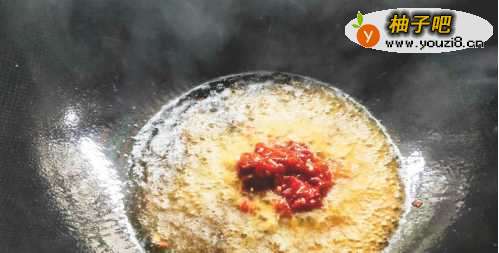 炒锅烧热加入菜籽油,菜籽油烧辣后,放入豆瓣酱爆断生。