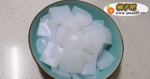 买回来的凉粉用水冲洗下,切小块