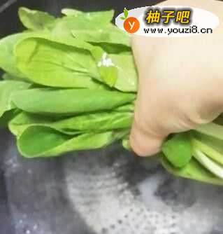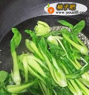 2烧小半锅水,给一勺盐,一勺油,水开了放入油菜。