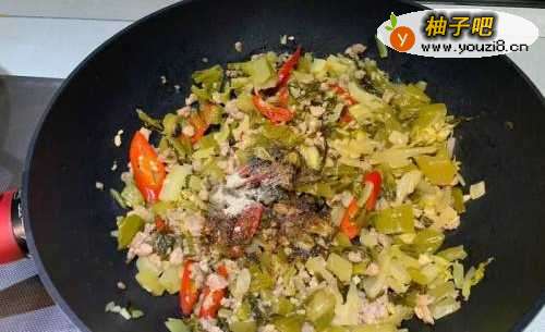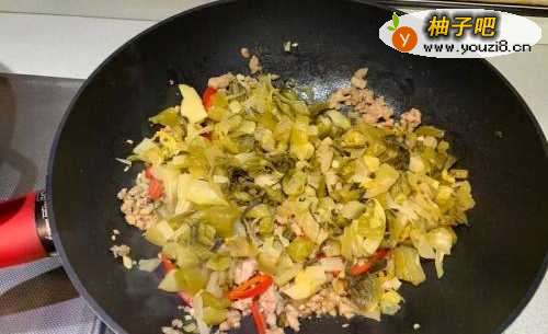 5再放入酸菜炒匀