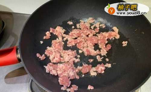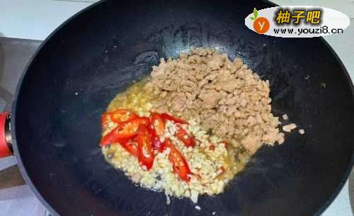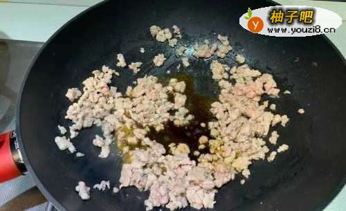 2放入肉末炒至变白