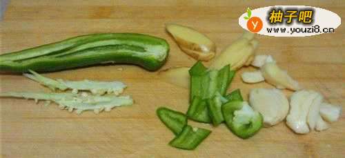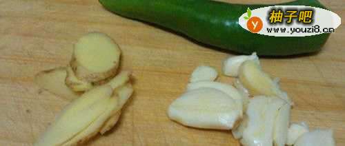 3姜切片,蒜拍碎。
