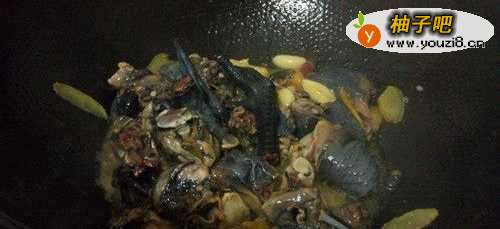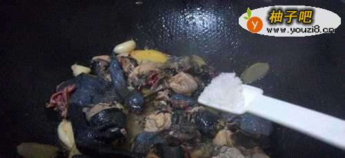 7放入乌鸡块,翻炒。