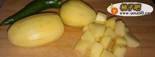 土豆去皮,洗净,切块。如图