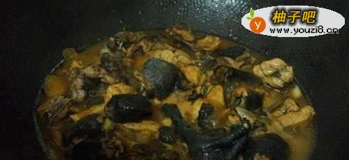 9放入适量热水或者高汤焖煮鸡肉,焖3分钟让其入味。