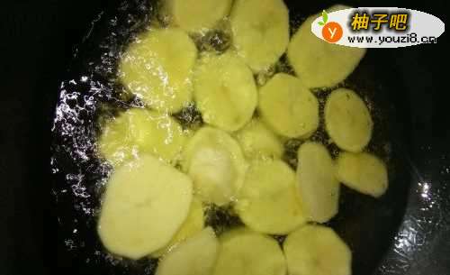 3开火,加入食用油,将土豆下锅里炸定型后捞出;