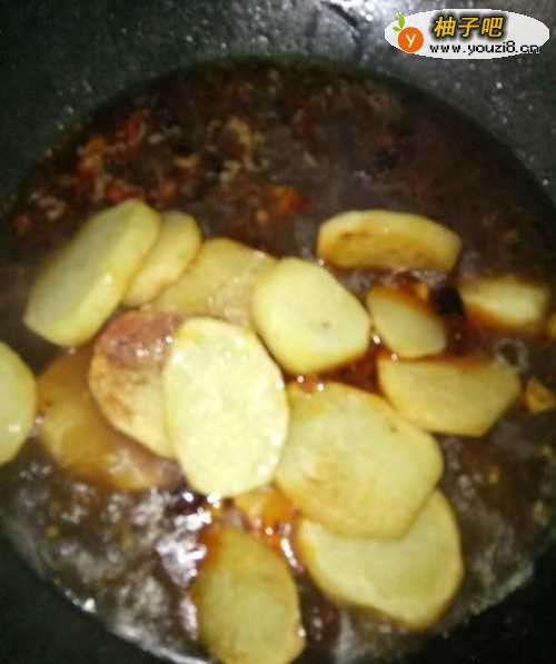 5加入适量的料酒、水,将土豆下入锅里,一起煮;