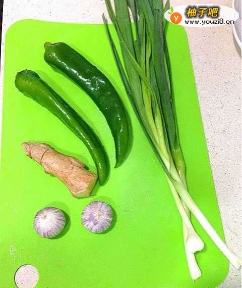 4甜面酱、汉源的花椒、郫县的豆瓣,共同来为回锅肉添光彩。青椒滚刀切小块、蒜苗拍破后斜刀切段,姜蒜切片。