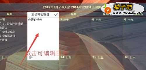 15设置完后,就是我们编辑任务的时候了,可以在桌面的显示框,双击日期对应的方框,可以对这天的任务进行编辑,如图