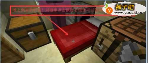 4得到这个“复活点"了之后!那么该如何使用这个复活点!死后瞬间回到这里的床呢?答案是很简单的!只要把床放出来,在晚上来临的时刻,十字光标对着床,鼠标右键使用床,这样睡上一个晚上便可以了!