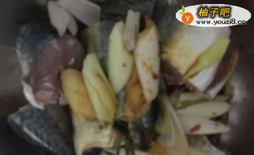 2加入姜片葱段,腌制20分钟。