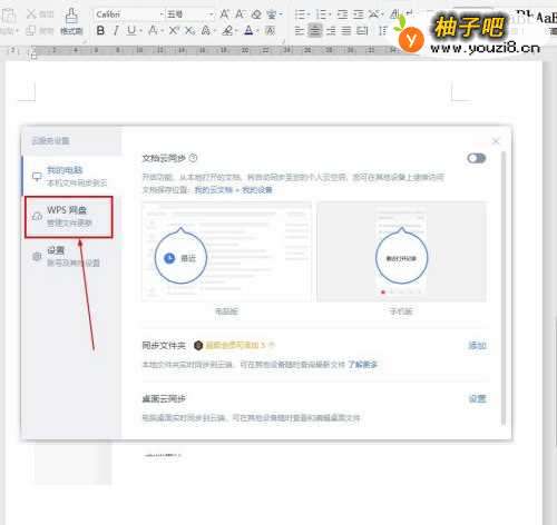 3在“云文档设置”窗口,选择【WPS网盘】;