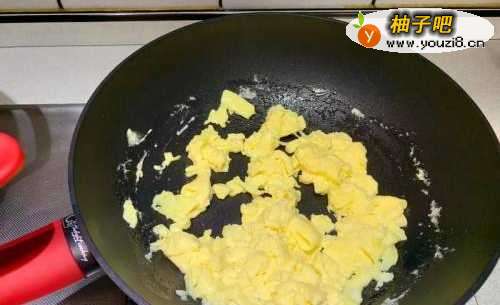 3油热放入蛋液炒至8分熟,盛盆备用