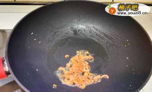 4原锅放入少许油爆香虾仁